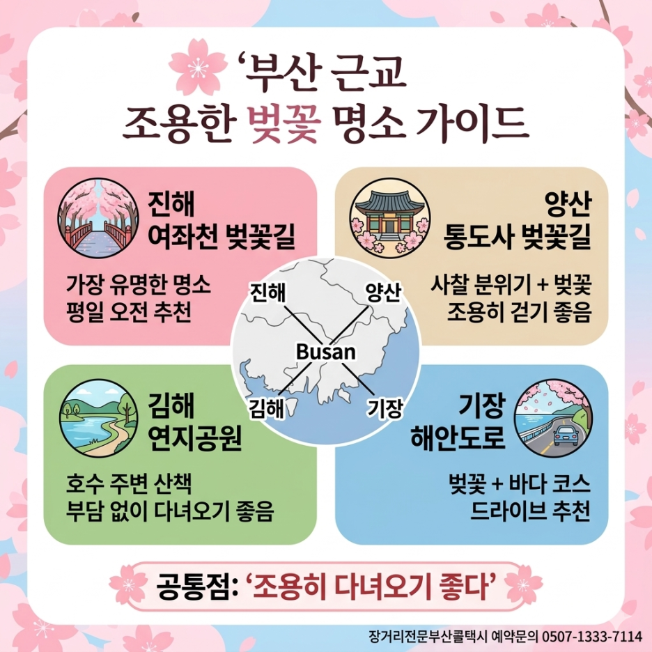 | 부산에서 진해 벚꽃 택시 여행 🌸 장거리 시외 택시로 편하게 다녀오는 방법 (진해 당일치기 추천) (0) | 2026.04.02 |