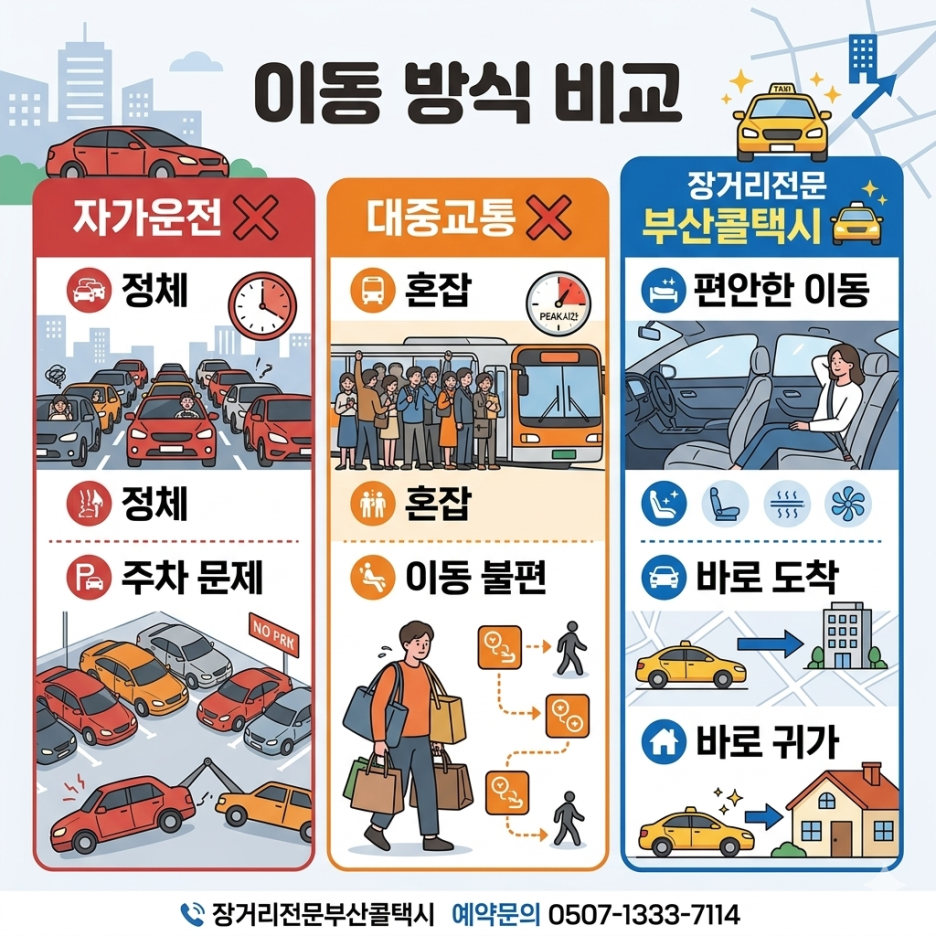 🚖 장거리 전문 부산 콜택시로 이동하는 방식을 많이 선택합니다.